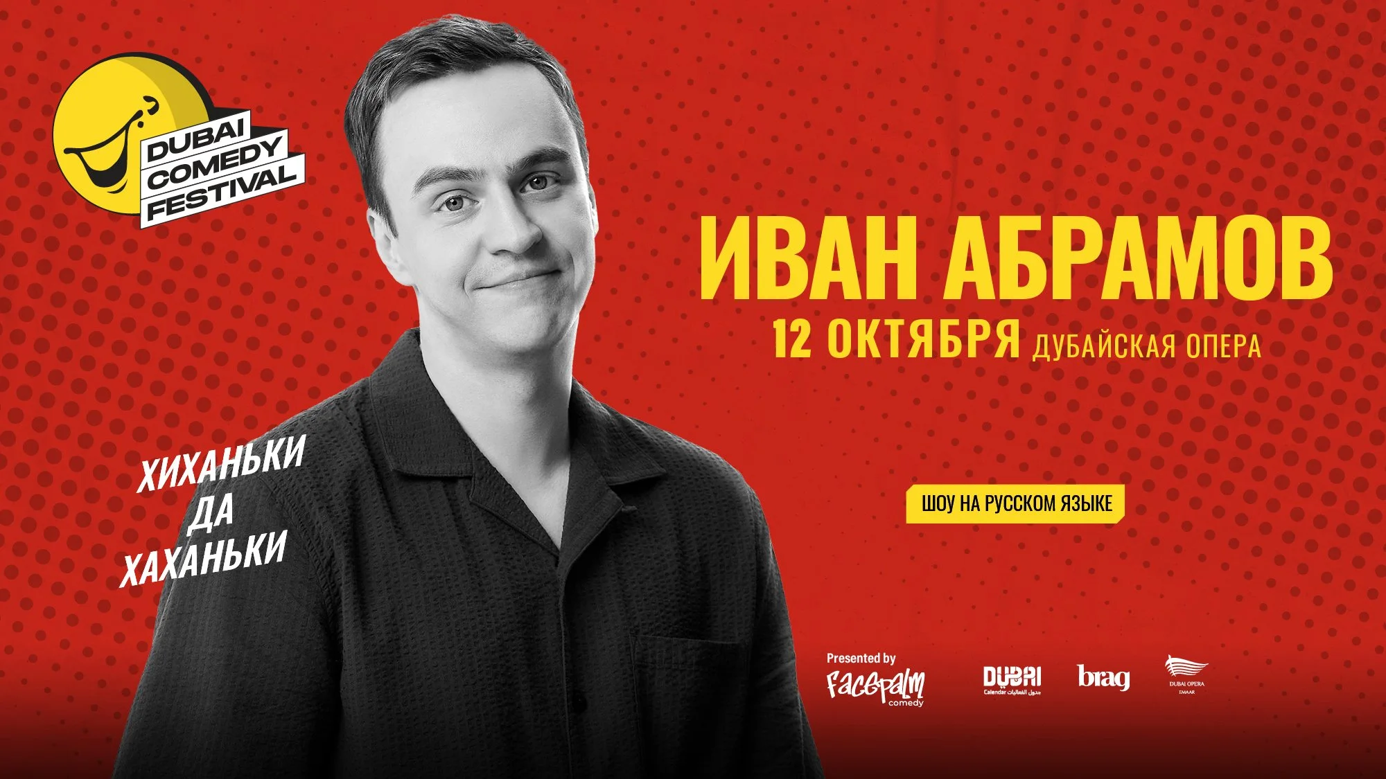 Catch Russian comedian, Ivan Abramov, performing his new show ‘Hi-Hi, Ha-Ha’, at Dubai Opera on October 12th as part of the Dubai Comedy Festival! A fan of computer games and classical literature, Ivan uses a creative approach and his characteristic intelligence to always look at ordinary situations from an unconventional angle. With millions of views on YouTube for his specials "A Big Child" and "My Girls", he's a comedy force you don’t want to miss.